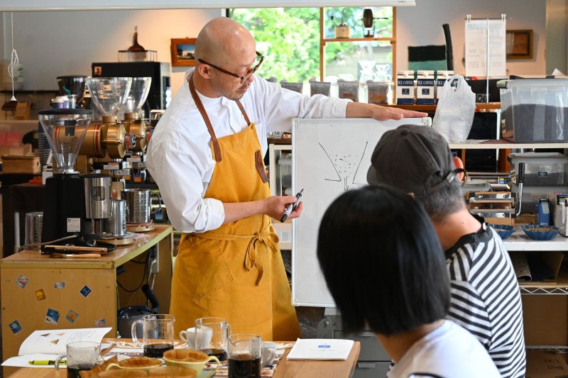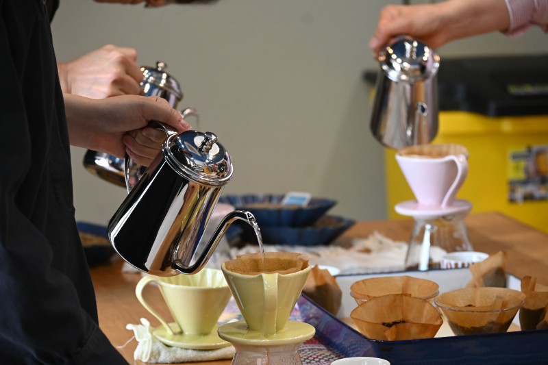 円錐型のペーパードリッパーを使った淹れ方の演習です。気をつける点ややってはいけないことなどもご説明いたします。