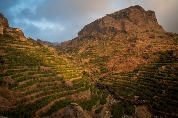 イエメンのコーヒー栽培には二つの大きな特徴があります。一つはイスラム教国である点です。外部との接触が少なく閉鎖的であることや神に与えられたものに手を加えることを嫌うことから品種の改良がなく,栽培に関しても昔ながらの伝統的な農業が守られている珍しい産地です。つまり,イエメンでコーヒー栽培が始まった15世紀頃に飲まれていたコーヒーとほぼ同じものが味わえると言うことなります。なんだかそれだけでワクワクしますね。そして二つ目の特徴は,乾燥した空気と山岳地帯が生み出す特殊な気候。主要な栽培地のある西部のサナア県付近は3,000m級の急峻な山並みが続き,緑の少ない山肌に”テラス”と呼ばれる階段状の耕作地を設けて農業が行われています。水分が少なく厳しい環境ですが,その分根がしっかり張って丈夫な木が育つそうです。日中は30℃ほどの高温で夜間は0℃まで下がる極端な寒暖差の中でじっくり熟していくこと,果肉ごと天日乾燥させる原始的な精製方法,などから熟した果実の様な特徴的なフレーバーやワイニーと称される深みのある豊かな味わいが生み出されます。