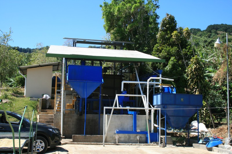 コスタリカでは元々は大規模なコーヒー生産が基本で,小規模な生産者は自分の農地で作られたコーヒーを,収穫後のチェリー(赤い実)のままで安価で業者に販売するしかありませんでした。そんな中で,標高の高い恵まれた環境下で生産された品質の高いコーヒーを自らの手で丁寧に精製・乾燥し,品質に見合った価格で直接販売する動きが出て来ました。2006年にコスタリカを訪問した際には,ちょうどこうした動きが出始めてきた頃で,生産者もあれこれ模索をしている最中でした。そんな中から生まれたのが”マイクロ・ミル”になります。カリサル・アリバの農園主ガンボア氏の所有するミル”モンテス・デ・オロ”はこうして作られたマイクロ・ミルの一つです。これにより隅々まで管理が行き届いて品質の高いコーヒー生産が可能となりました。当初はアメリカのロースターが独占的に購入していましたが、10年ほど前から私たちのグループで使用できるようになりました。